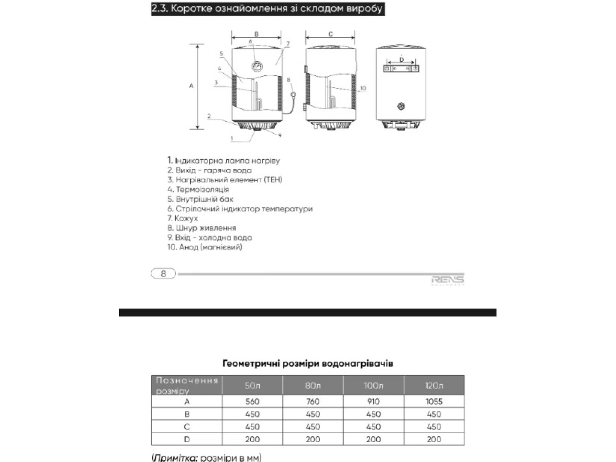 Переваги Бойлер Rens Comfort 100л RE100-15W